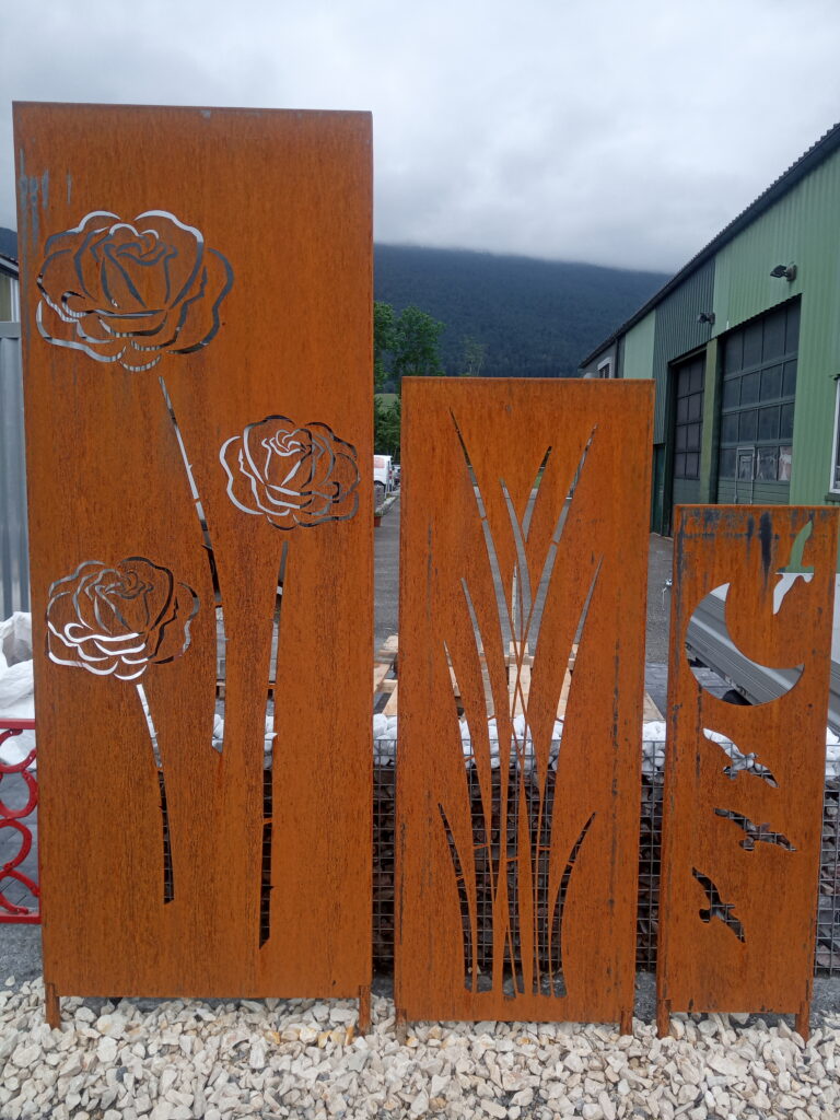Grundsätzlich stellen wir Sichtschutzwände in allen Grössen, Materialdicken, mit oder ohne Gelaserten Motiven oder LED Beleuchtung. Die Sichtschutzwände sind seitlich und oben 25mm abgekantet, so das dass Blech nicht Baucht.